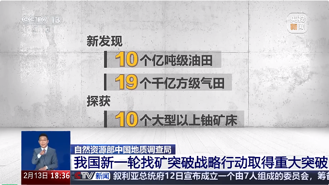 新一輪找礦突破戰(zhàn)略行動(dòng)實(shí)施以來(lái),各地聚焦大宗緊缺和戰(zhàn)略性新興產(chǎn)業(yè)礦產(chǎn),圍繞重點(diǎn)成礦區(qū)帶和重要含油氣盆地,實(shí)現(xiàn)了一系列重大找礦突破,西部地區(qū)新增一批能源資源基地,中東部老資源基地資源基礎(chǔ)進(jìn)一步夯實(shí)。
