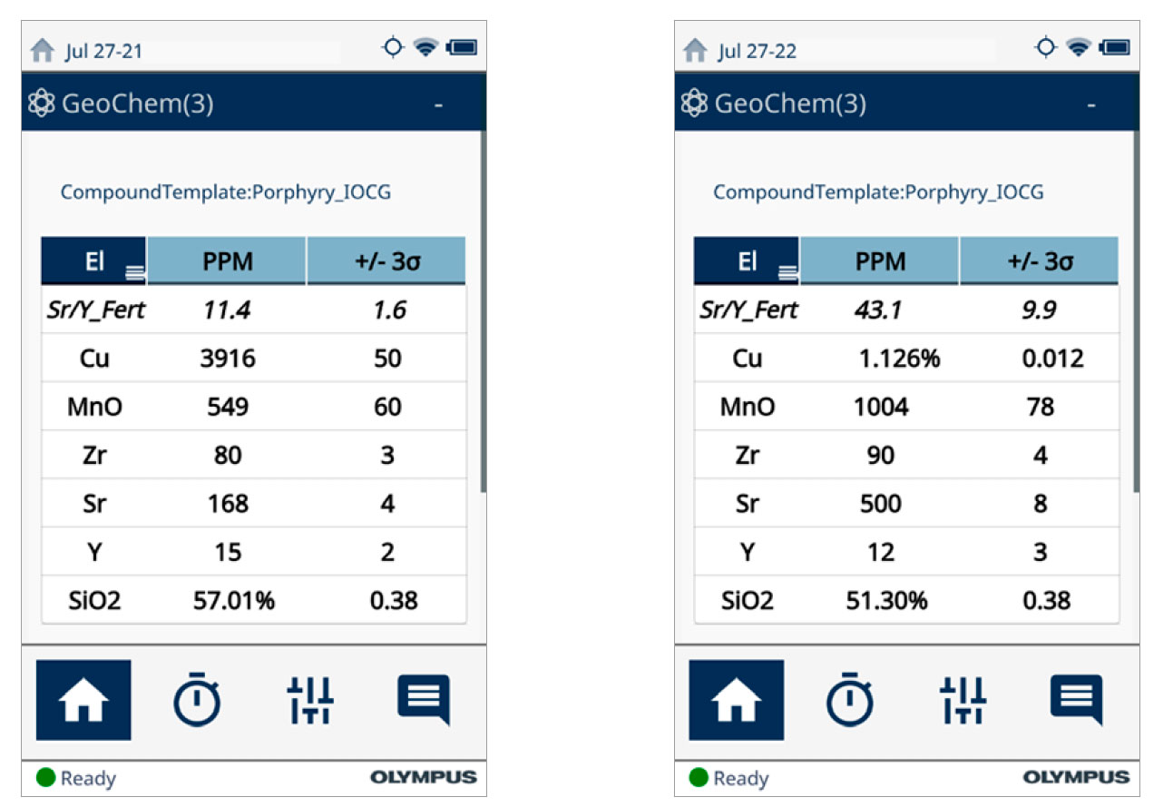 使用奧林巴斯Vanta手持式XRF分析儀上的偽元素功能,可隨時(shí)在分析儀屏幕上顯示任何感興趣的比率。此外,化合物顯示功能可使Vanta分析儀顯示與單個(gè)元素相結(jié)合的氧化物。分析儀在檢測(cè)過(guò)程中完成這些計(jì)算,如上圖所示。