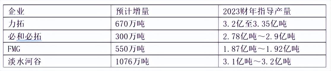 供應端,對力拓、必和必拓、淡水河谷、FMG四大寡頭的2023財年鐵礦石產量指導情況來看,預計2023年四大礦山鐵礦石產銷量不減反增,增加約2600萬噸。根據發往中國比例估算,對國內增量約為2000萬噸。