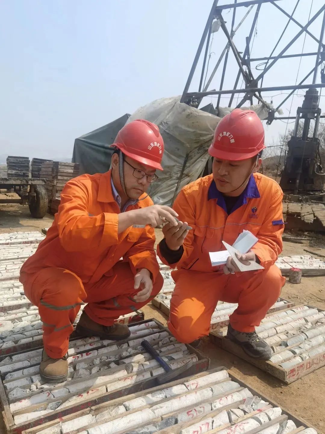山東地礦六隊地質人員查看鉆取的金礦巖心