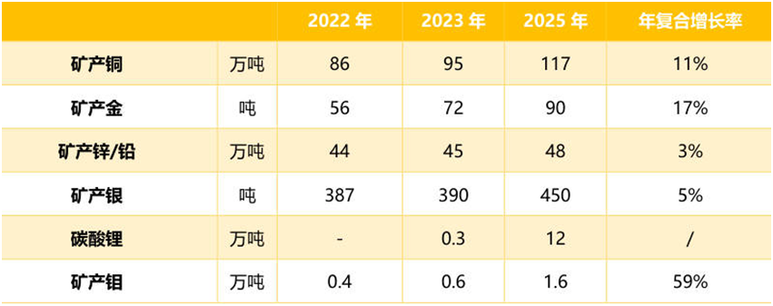 紫金擴產計劃很明確,卡莫阿-卡庫拉銅礦等諸多世界級礦山仍在擴張期,去年收購南美洲最大的在產金礦之一 Rosebel 金礦、收購國內最大金礦海域金礦30%權益,收購 20%股權成為招金礦業第二大股東,強勢收購打下了其礦產金第二階的高增長的基礎。按照2023年1月30日新修訂的《三年(2023-2025 年)規劃和 2030年發展目標綱要》,明確到2030年綜合指標排名進入全球一流礦業公司行列,銅、金礦產品產量進入全球 3-5 位,鋰進入全球前10位,發展規劃清晰,成長潛力較大。