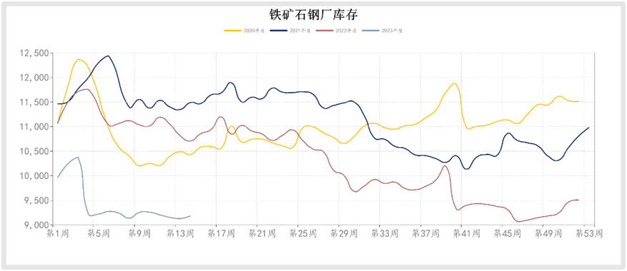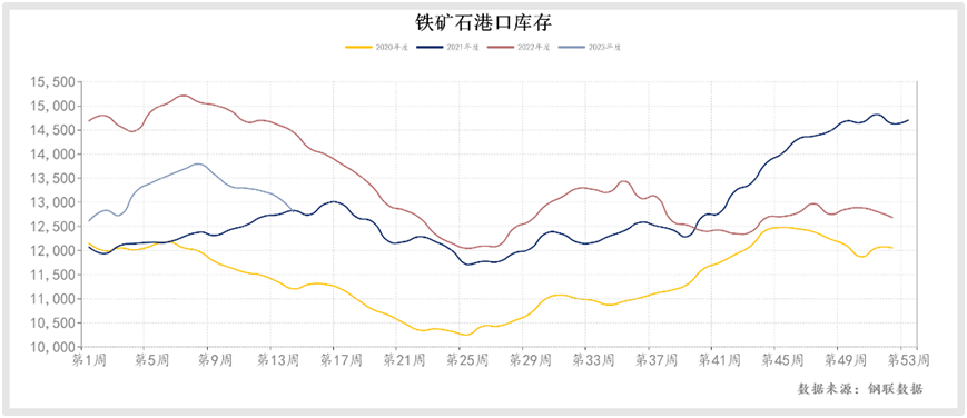 據mysteel數據,4月初的一周,其統計的247家鋼廠高爐產能利用率91.2%,日均鐵水產量245.07萬噸,距離近五年的最高點,即2020年8月份的253.3萬噸,只相差8.23萬噸。目前鋼廠鐵礦石總庫存與庫銷比維持低位,45港口鐵礦石庫存去庫308萬噸至1.32億噸。