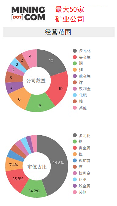 目前,50大礦企市值合計為1.38萬億美元,回落到2021年6月底的水平。