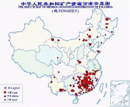 中國是世界上鎢礦資源最豐富的國家。已探明礦產地有252處,分布于23個省(區)。總保有儲量WO 2,529萬噸,居世界第1位。產量也居世界首位,是我國傳統出口的礦產品。就省(區)來看,以湖南(白鎢礦為主)、江西(黑鎢礦為主)為多,儲量分別占全國總儲量的33.8%和20.7%;河南、廣西、福建、廣東等省(區)次之。