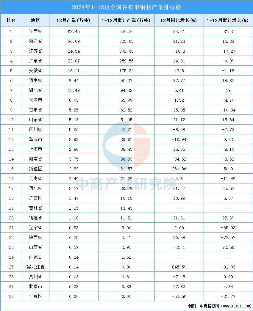 中國銅材生產(chǎn)第一大省:產(chǎn)量達到636.2萬噸,超過浙江+江蘇總和